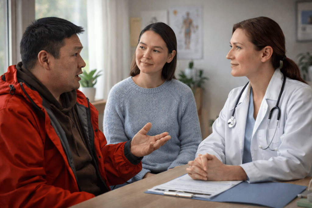 - Nakorsaqarfiup iluani: Sundhedsloven §50 malillugu nakorsartittut pisariaqartikkunikku oqalutseqarsinnaatitaapput, aamma §2 imm. 4 malillugu Kalaallisut oqaasillit akiliitinneqassanngillat